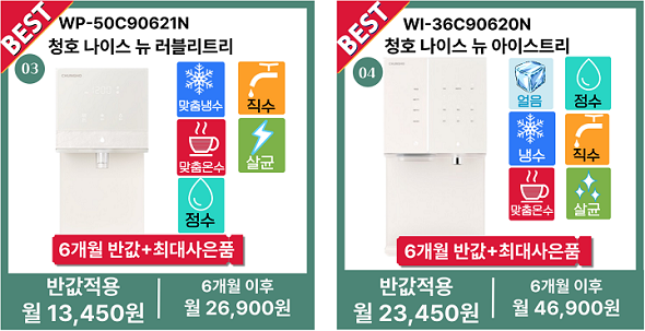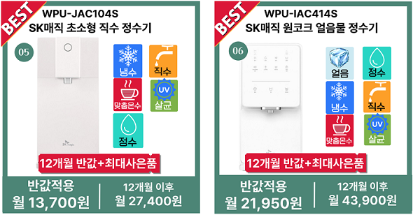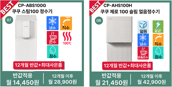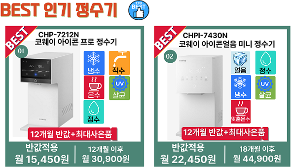 SK매직,코웨이,쿠쿠,청호나이스 정수기렌탈 가격&혜택비교: 반값 할인에 사은품까지!!